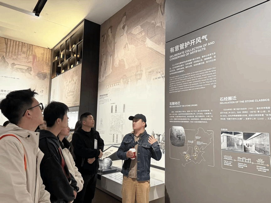 党课结束后,全体人员入馆参观学习。大家跟随讲解员2024级 设计专业研究生芦思豪,循着文物的踪迹,穿梭于各个展厅,从远古先民的生活遗存到秦汉隋唐的文明瑰宝,每一件文物都成为触摸历史、感悟文脉的窗口。结合此前党课所学,师生们在参观中交流思考,深刻体会到中华民族五千年文明的深厚底蕴,更坚定了传承文化根脉、守护家国安宁的责任意识与担当。